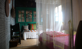 Das Haus wurde vor ca. 100 Jahren in Anlehnung an den Baustil der Ming Dynastie erbaut: schwarzer Ziegel, Holzsäulen und runde Trägerbalken, Symmetrie (Taoismus) der 4 Wohnräume rechts und links der Mittelhalle mit Hausaltar, die oberen Zimmer mit Fenstern ins Innere. Einige Holzschnitzereien und Steinreliefs sind erhalten, die meisten aber und die Wandmalereien wurden während der Kulturrevolution unwiederbringlich zerstört. Angeschlossen sind ein großes Kochhaus und zwei begrünte Haushöfe. Gut erhalten ist das 4 m hohe Holz-Eingangtor mit traditioneller Holzverriegelung und Holz-Schiebe-Gitter.
